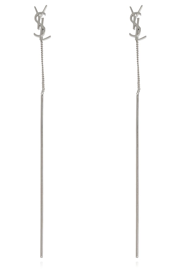 Silver-tone ‘Opyum’ long earrings from Saint Laurent. Crafted from brass, this design is complete with a metal logo detail.