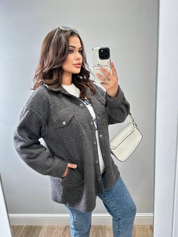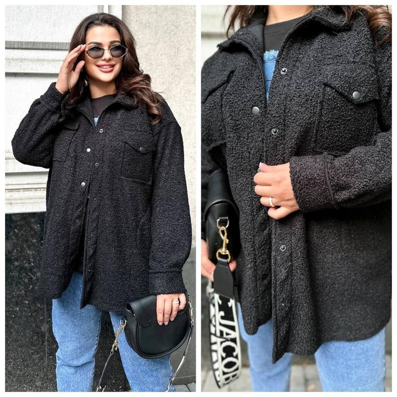 с текстурой барашка. Удлиненный свободный крой с длинными рукавами и