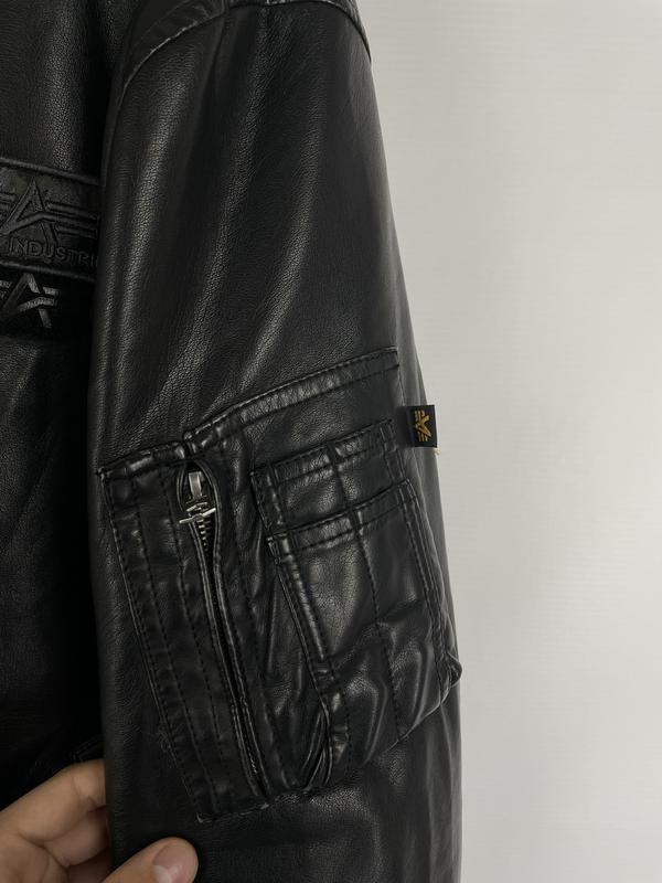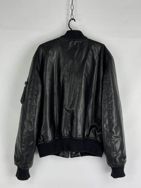 Бомбер куртка кожаный Alpha Industries черный винтаж кожа мотокуртка байкерская