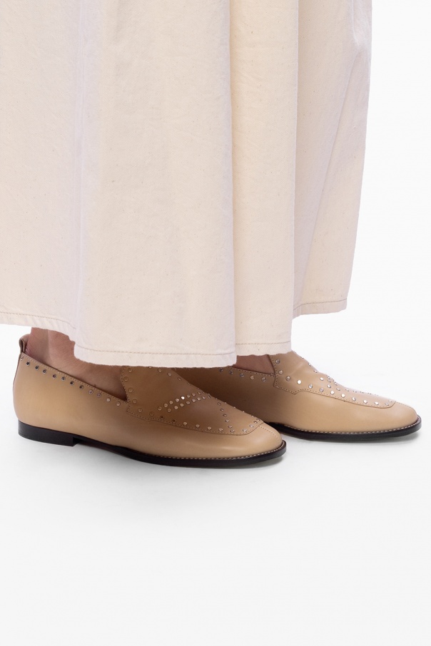 Beige ‘Studded Loafer’ shoes from Isabel Marant. Crafted from leather, this design features inserts with silver-tone studs and a leather sole in beige and black.