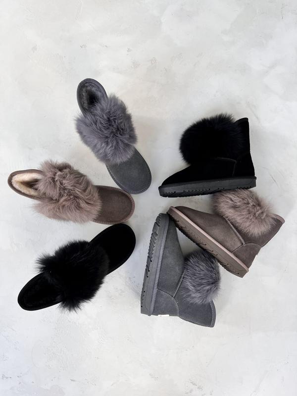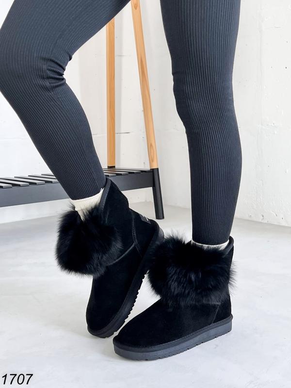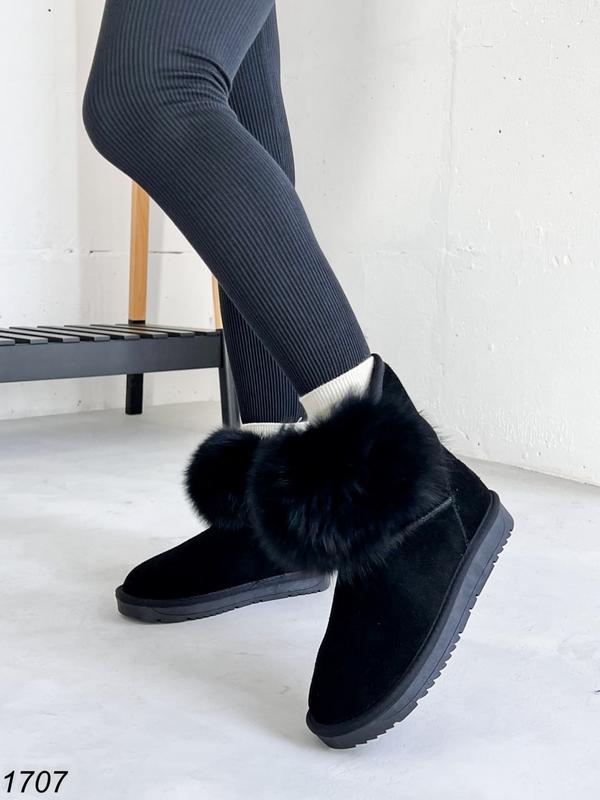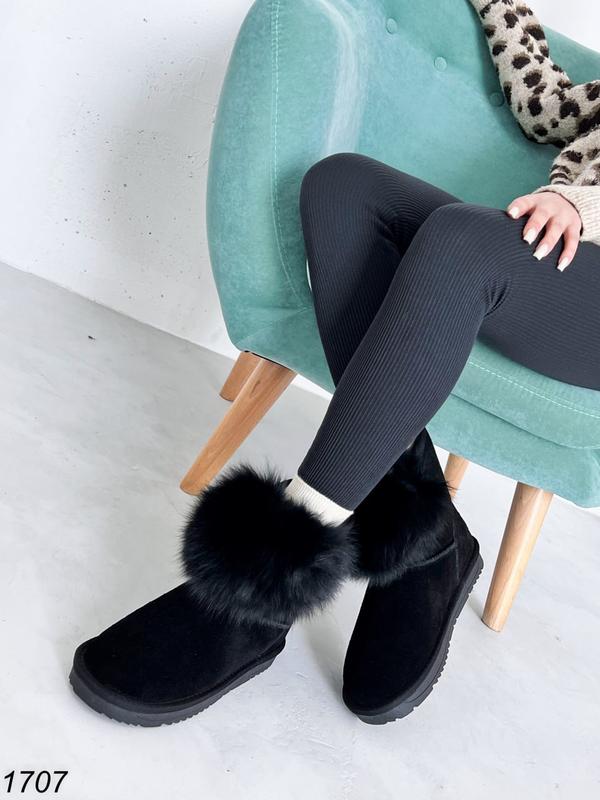 Женские зимние угги из натуральной замши и с натуральным мехом
