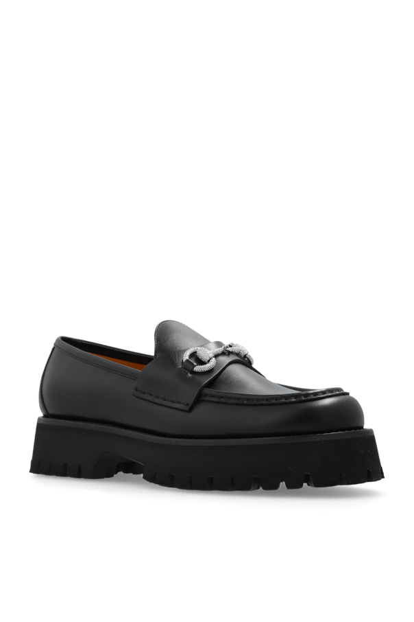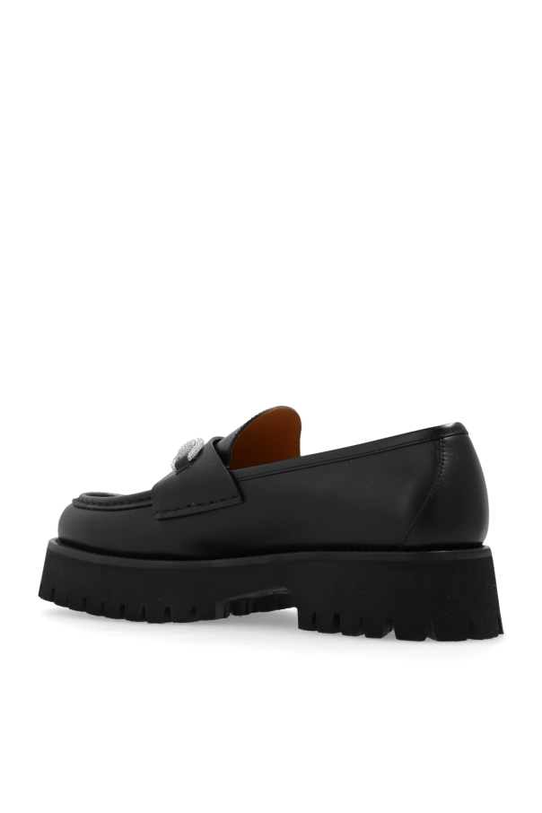 Black moccasins from Gucci. Made of leather, this pair features a horsebit detail and a black rubber sole.