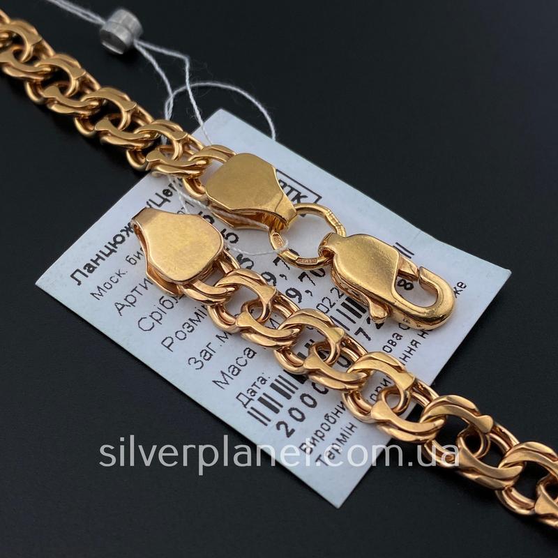 Толстая позолоченная мужская серебряная цепочка с крестиком.