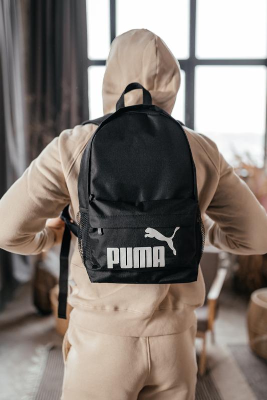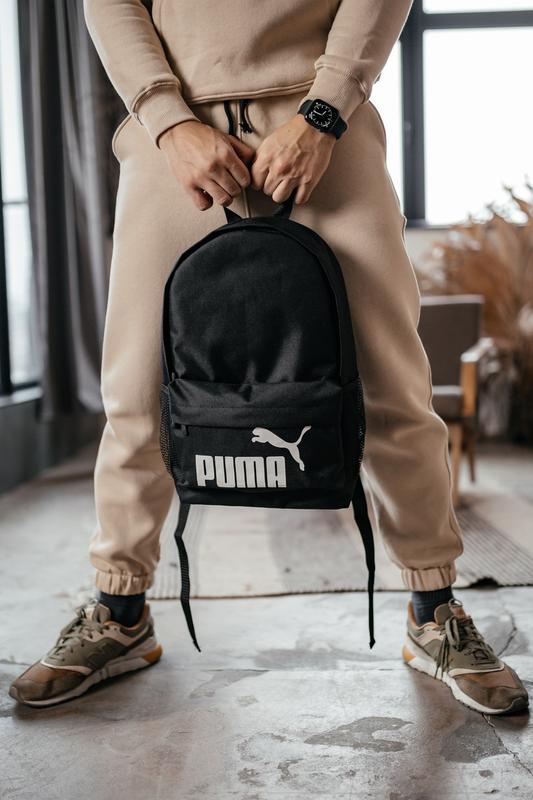 Рюкзак спортивный мужской городской черный Пума значок, молодежный