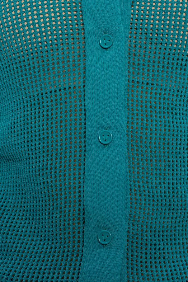Green knitted cardigan from Bottega Veneta. This long sleeve design fastens with buttons.