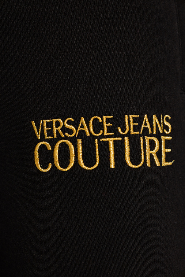 Black sweatpants from Versace Jeans Couture. Crafted from cotton, this pair features a drawstring waistband, elasticated cuffs, two slip pockets and gold-tone logo embroidery.