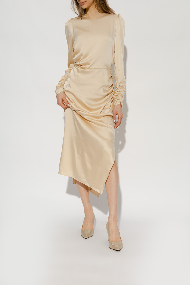 Beige ‘Milly’ pumps from Michael Michael Kors. Made of fabric inlaid with gold-tone lurex threads, this pair has a pointed toe, gold-tone logo detail and brown rubber sole.