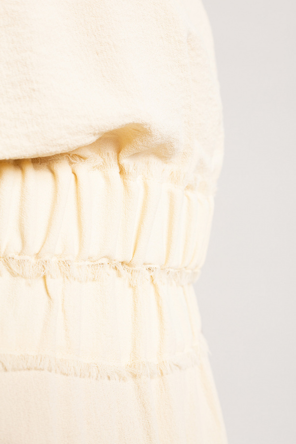 Cream skirt from Toteme. Featuring an elastic waistband, this design has a raw edge.