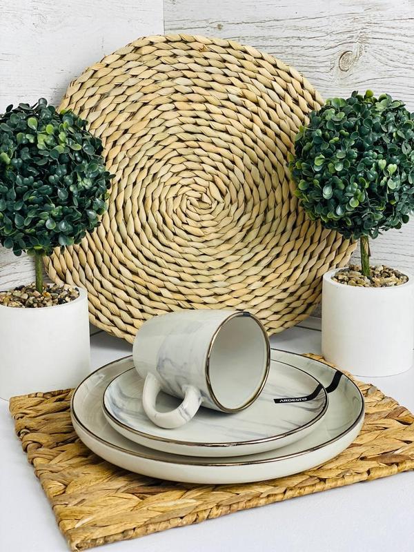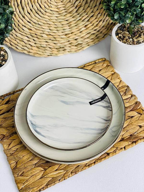 Тарілки мають стильний бортик та мармуровий принт які додають оригінальності