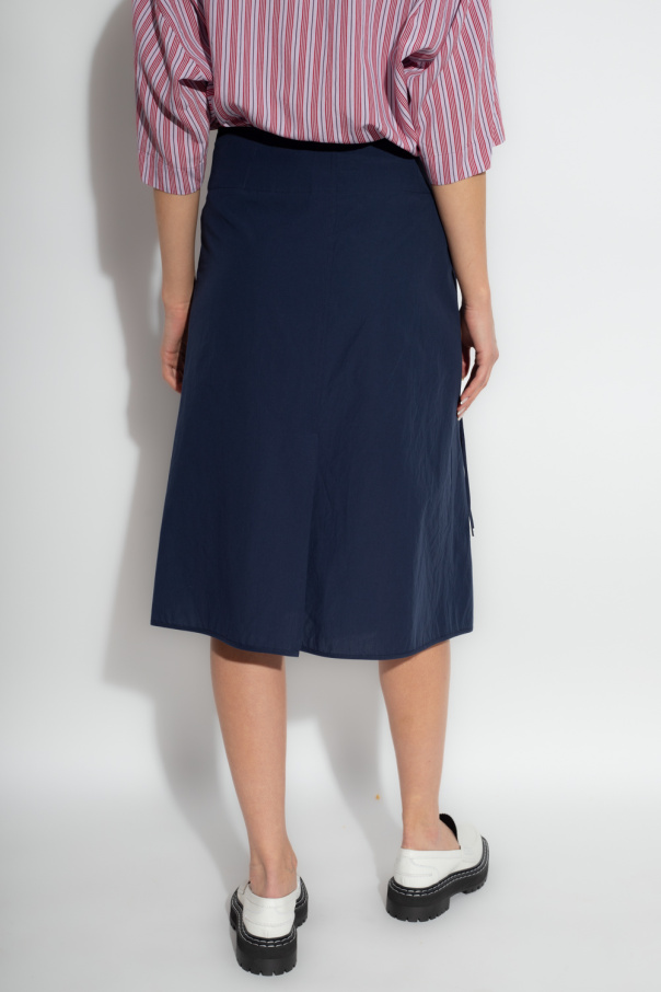 Navy layered skirt from Lemaire. Made of cotton, this flared midi skirt features buttons and tie fastenings. Can be worn in various ways.