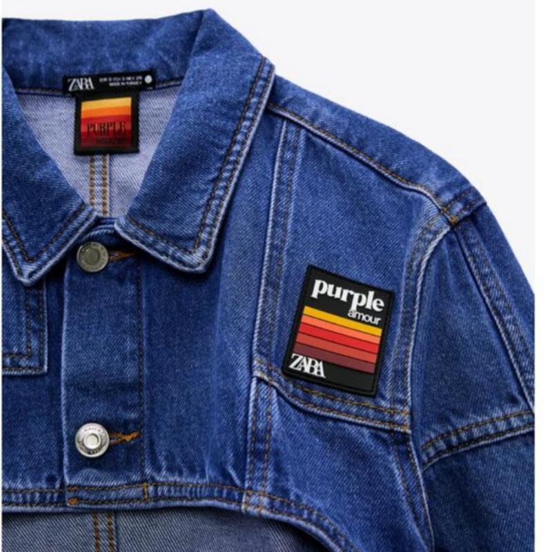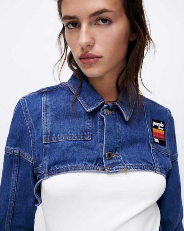 В наличии укороченная джинсовка от Zara, с фирменным силиконовым патчем