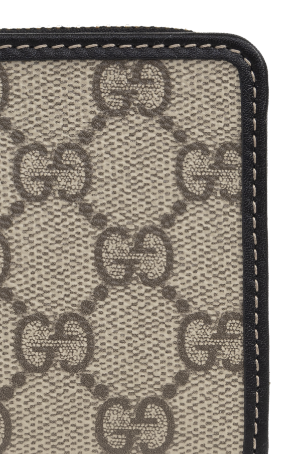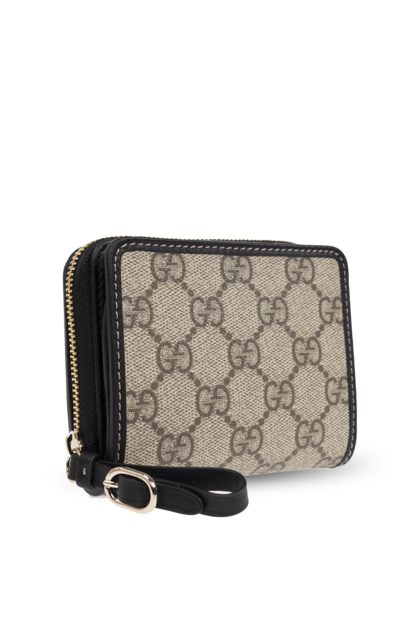 Introducing the GG Supreme Canvas Wallet, a paragon of sophistication and design from the esteemed house of Gucci. Enveloped in a signature beige canvas adorned with the iconic \'GG\' motif, this wallet is accentuated by sleek black edges and a refined zipper closure. The wallet\'s meticulous craftsmanship is evident in its rectangular silhouette, which opens to reveal a luxurious black interior. Inside, you\'ll find a pocket for banknotes, five card slots, and a zip-secured coin compartment, ensuring your essentials are both organized and secure. An additional black strap with metallic hardware completes this exquisite accessory, underscoring its elegant finish. Under the visionary direction of Alessandro Michele, Gucci has embraced a new era of luxury, combining Italian craftsmanship with modern aesthetics. This wallet is a testament to the brand\'s commitment to innovation and timeless style. Why Choose This Product? Iconic \'GG Supreme\' pattern exudes elegance. High-quality canvas and leather construction. Thoughtfully designed with ample storage solutions. Distinctive details reflect exceptional craftsmanship.