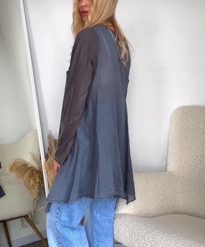 Замеры: пог 53, пл 37, рукав 64, поб 80, длина 65-80Состояние: ИдеальноеЦвет:- Серый