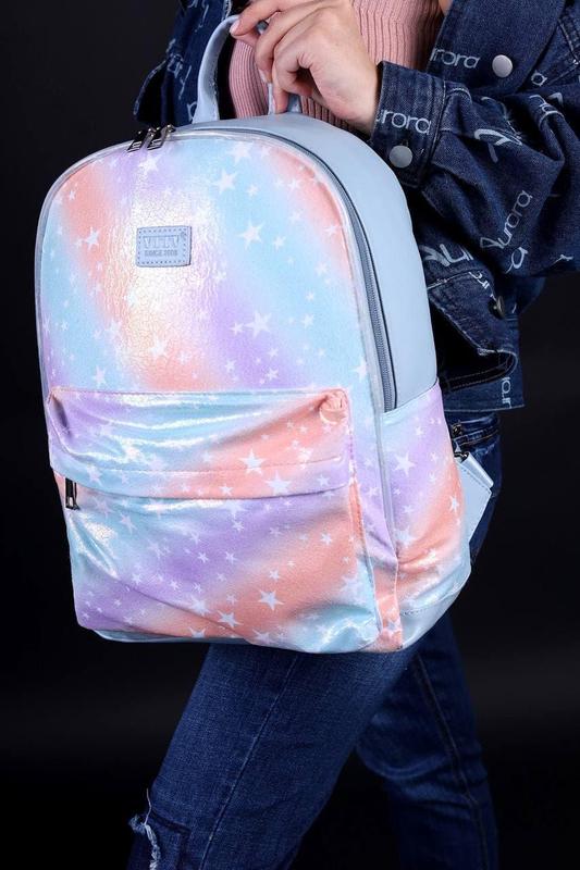 Рюкзак изготовлен из искусственной кожи, закрывается на молнию