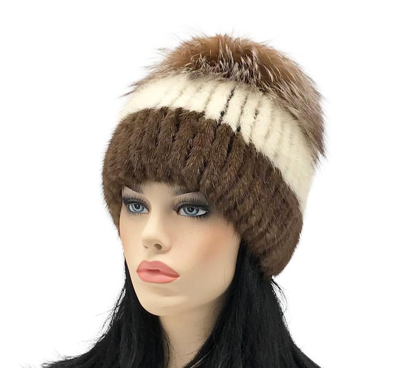 Меховая шапка из норки на трикотажной основе "Бон" (молочно-коричневая)