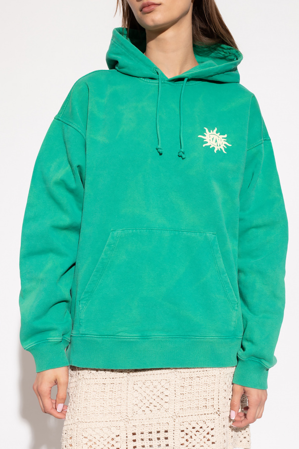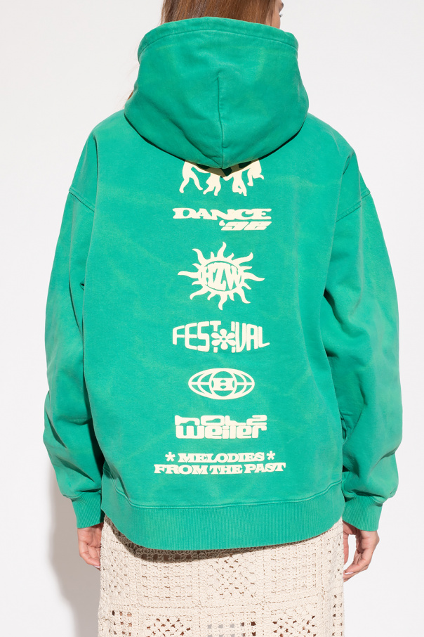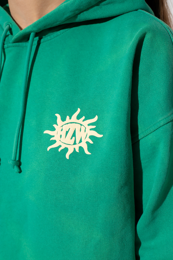 Green ‘W.Rivers’ sweatshirt from Holzweiler. Crafted from organic cotton, this garment features a yellow logo print, slip pocket and ribbed trims at the hem and cuffs.