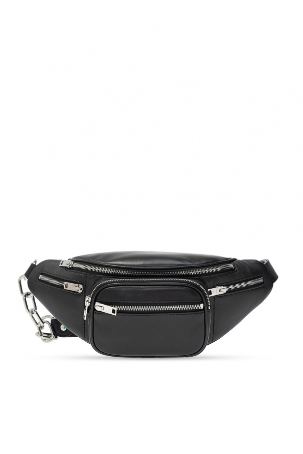 Black ‘Attica’ belt bag from Alexander Wang. Crafted from lamb leather, this design fastens via a zip and proudly presents an embossed silver-tone logo on the front. It is complete with four additional zipped pockets, an adjustable strap, silver-tone metal hardware and one internal compartment.