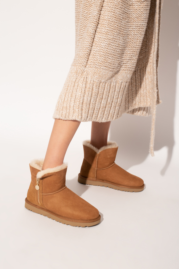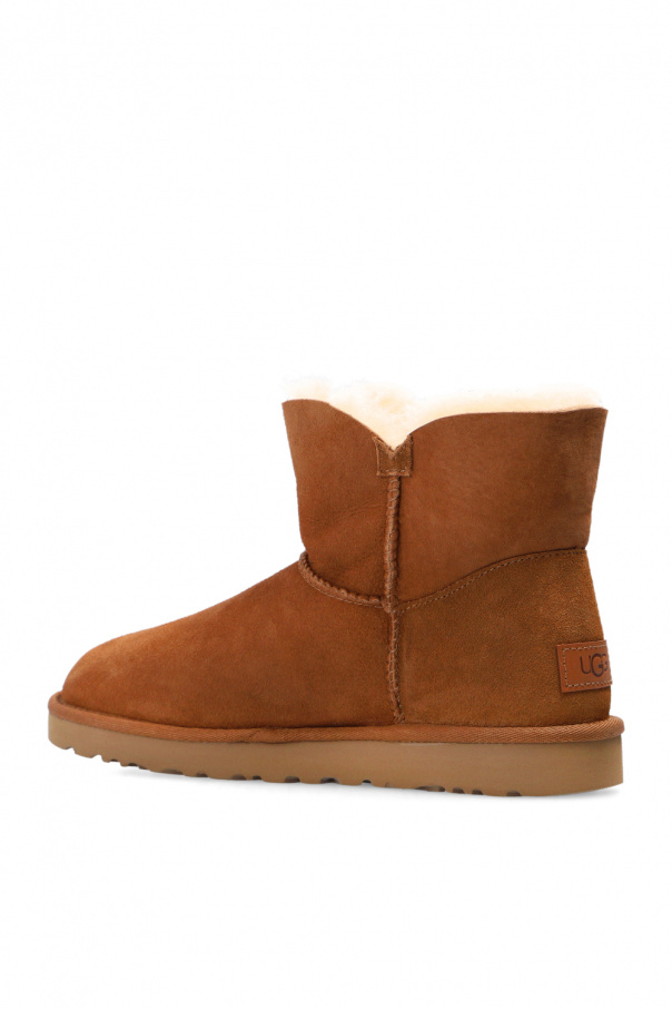 Brown ‘Bailey’ snow boots from UGG. Crafted from suede, this model sits on a brown rubber sole and features a gold-tone zipper, a black logo patch and UGGPure wool trims.
