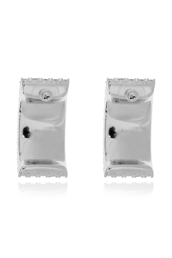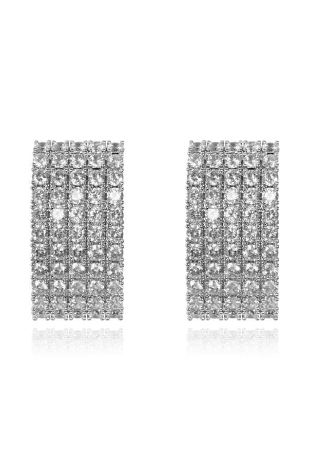Introducing the Shimmering Crystal Earrings by the distinguished designer Self-Portrait. These exquisite earrings boast a rectangular, subtly curved shape, accentuated by an intricate array of glistening crystals that cast a mesmerizing sparkle. Crafted from silver-hued metal and adorned with lustrous crystals, these earrings are a testament to refined elegance. The classic post-back closure ensures a secure and comfortable fit, making them an ideal choice for evening wear. Designed with a keen eye for romantic detail, these earrings embody Self-Portrait\'s ethos of creating luxury at accessible prices, offering a distinctive style that captures attention effortlessly. Why Choose This Product? Exquisite design with a unique rectangular and curved shape. Adorned with shimmering crystals for a dazzling effect. High-quality materials: glass and brass. Secure post-back closure for comfort and ease. Signature style from the renowned Self-Portrait designer.