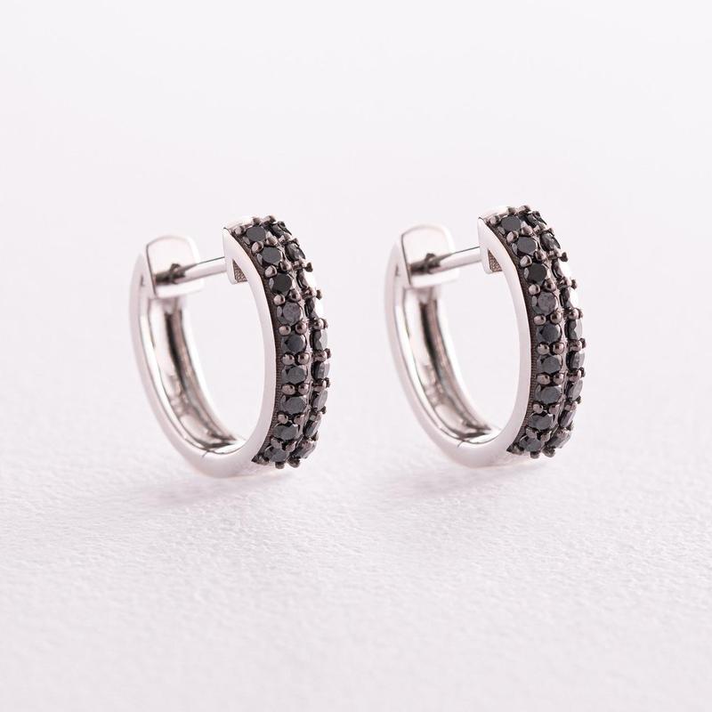 Золотые серьги с черными бриллиантами Металл: белое золото 585" Вставка: