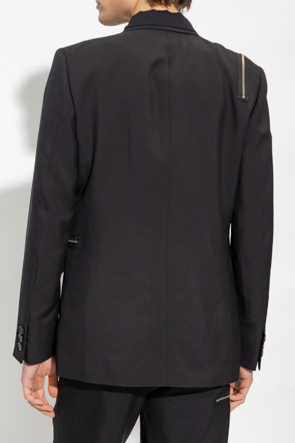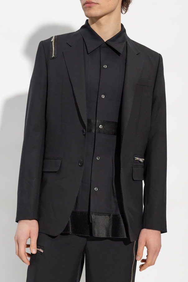 Black blazer from Undercover. Crafted from a wool and mohair blend, this design features button fastenings, decorative zips, two flap pockets, notch lapels and long sleeves with buttoned cuffs.