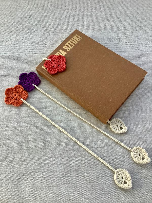 Закладки для книги, вязаные цветы. Ручная работа. Цена за 3 штуки. Длина вязаной цепочки 25-27 см. Состав: хлопок, акрил.