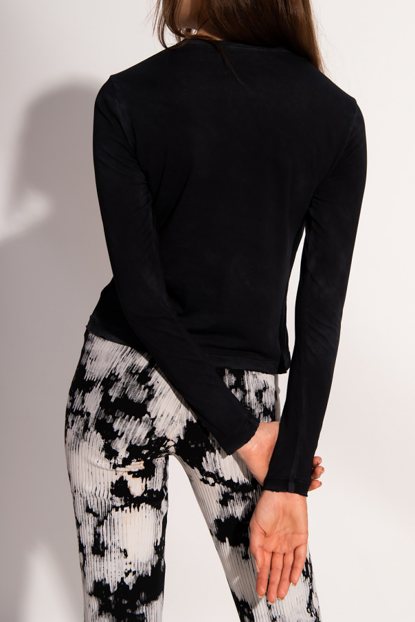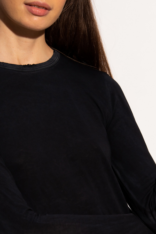 Black and grey crewneck top from Cotton Citizen. Crafted from hand-picked Supima® cotton, this long-sleeved style features raw-cut edges, time-worn effects and an elasticated collar.
