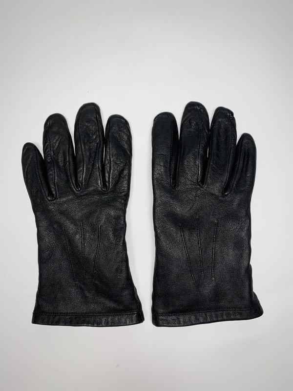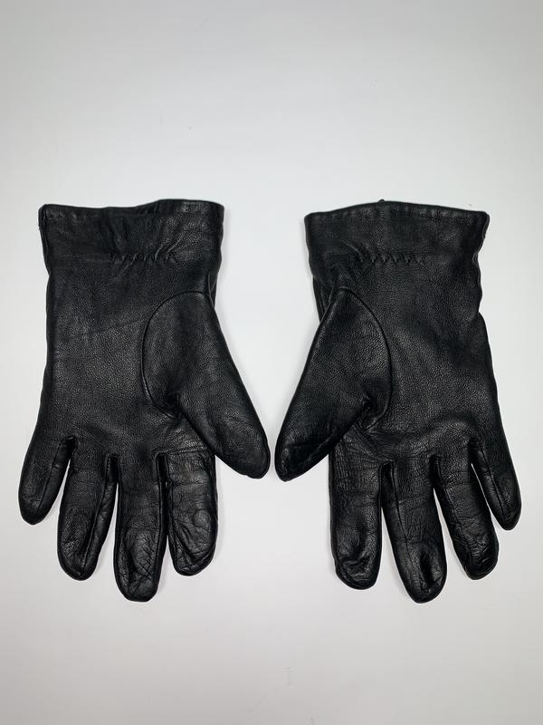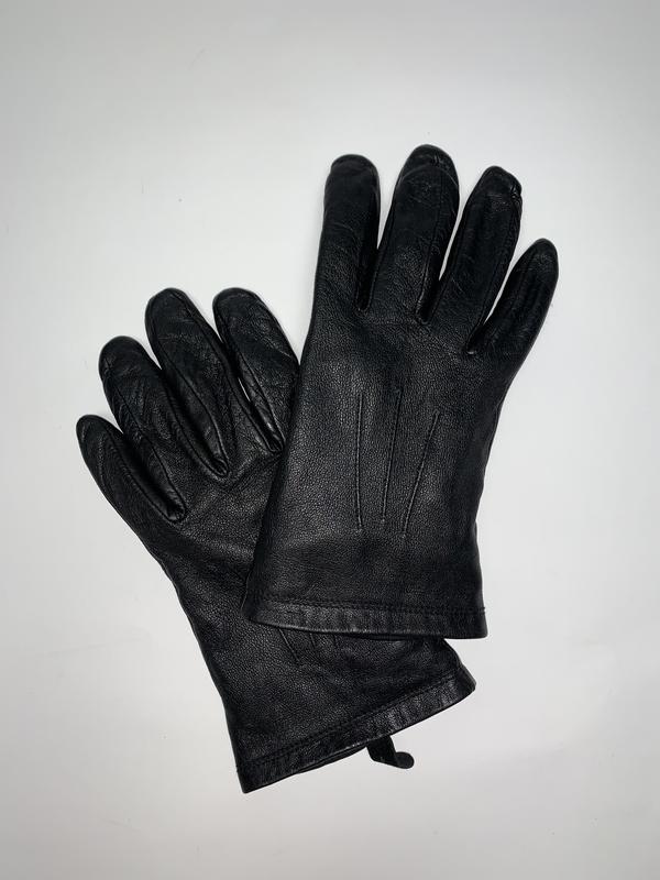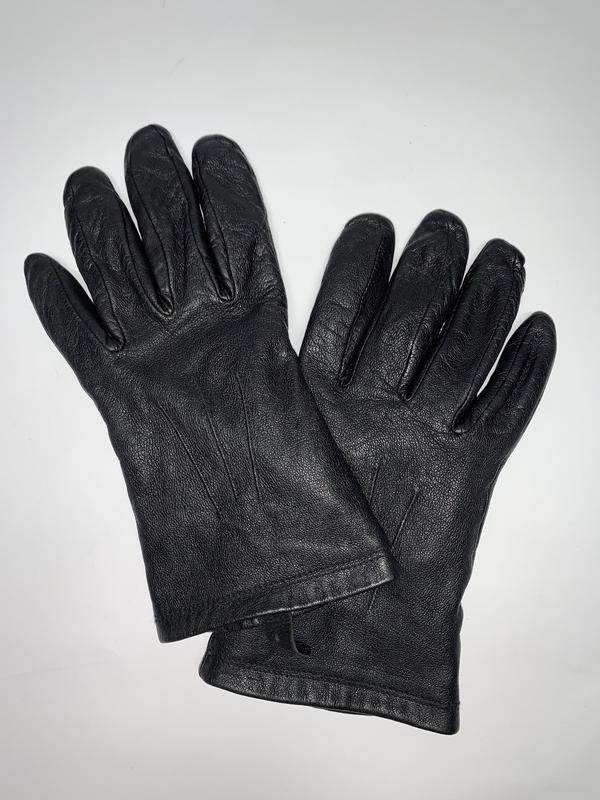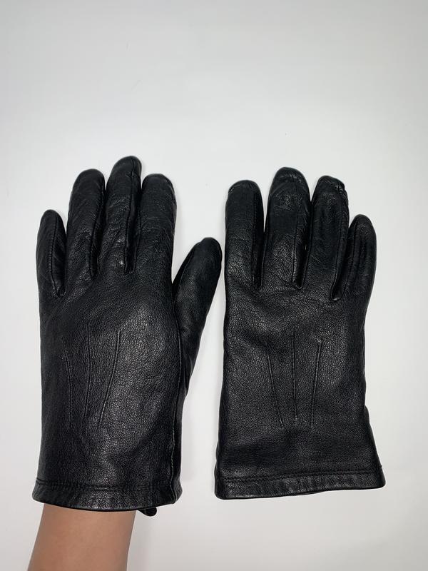 Женские кожаные перчатки на подкладке темно- темно- коричневого цвета, почти черного цвета, все как на фото, в очень хорошем состоянии. Размер не указан, но примерно M, ориентируйтесь по своим замерам: ширина в верху 11, ширина в ладоне 10, длина среднего пальца от основания 8, длина до конца среднего пальца 22