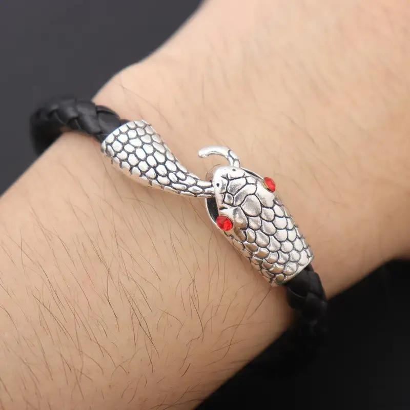 Описание: Мужской панк-браслет в форме змеи с красными глазами браслет из