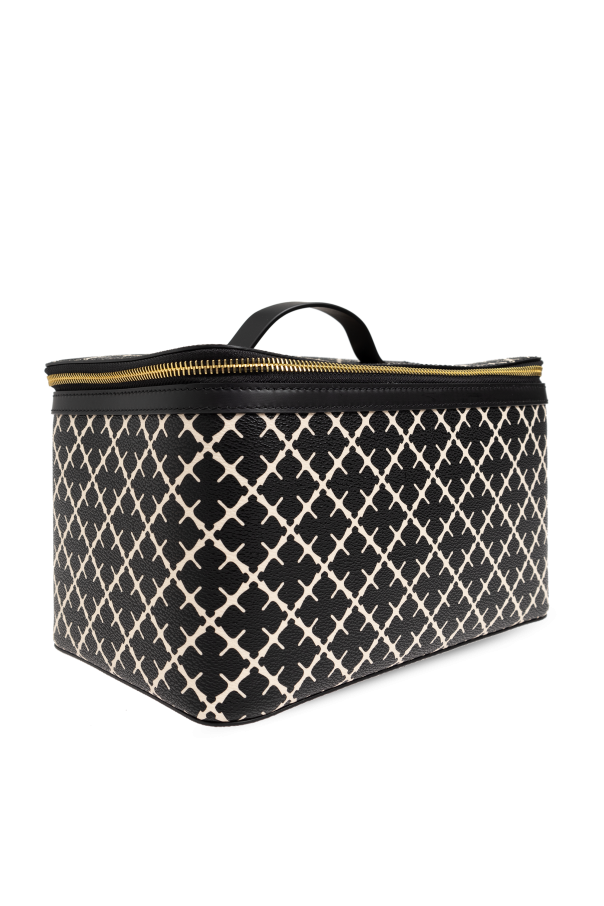 Introducing the exclusive By Malene Birger cosmetic bag, \'Bae\'. This exquisite piece from the renowned Danish designer\'s collection embodies refined elegance and sophisticated practicality. The \'Bae\' cosmetic bag boasts a distinctive rectangular shape with rounded edges, showcasing a striking black and white cross-patterned design that creates a regular grid. Crafted from high-quality material, potentially leather or its premium imitation, this bag exudes luxury and durability. Adorned with a gold-toned zipper, the bag offers a touch of opulence. A small handle on top ensures effortless portability. Inside, it features a beige interior equipped with multiple compartments and pockets to keep your essentials organized. Additionally, an inner smaller pouch enhances its functionality. The \'Bae\' cosmetic bag is characterized by its elegant and luxurious appearance, in line with the hallmarks of exclusive fashion brands. The robust and durable zipper further attests to the meticulous attention to detail and quality. Why Buy This Product? Designer Elegance: From the renowned By Malene Birger, known for timeless and eclectic designs. High-Quality Material: Made from premium materials, likely leather or its high-quality imitation. Functional Design: Features multiple compartments, including an additional inner pouch for enhanced organization. Luxurious Detailing: Gold-toned zipper and handle for a touch of opulence. Versatile Use: Perfect for storing cosmetics in a stylish and organized manner.