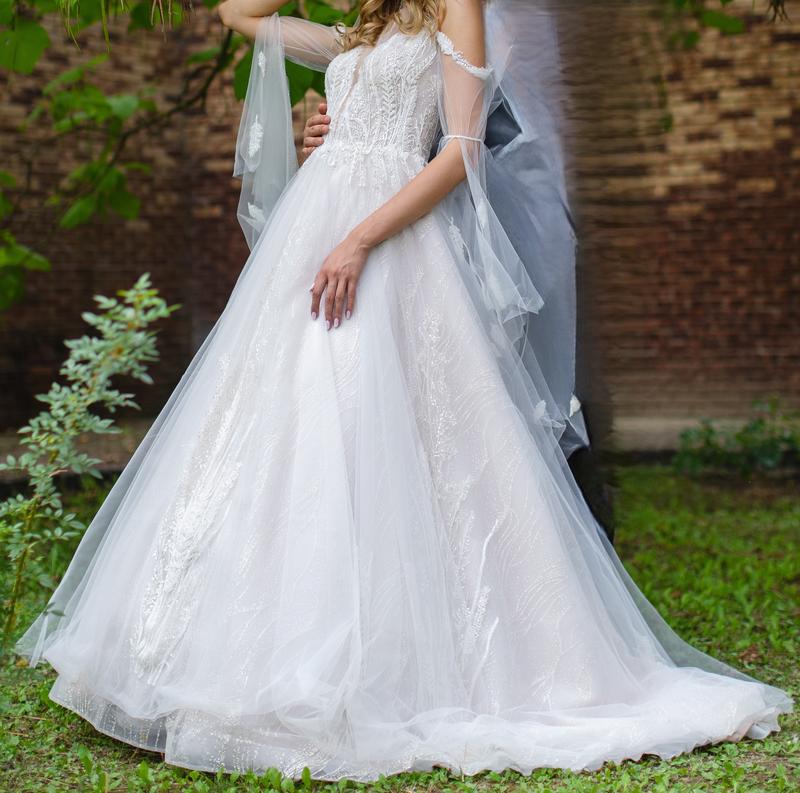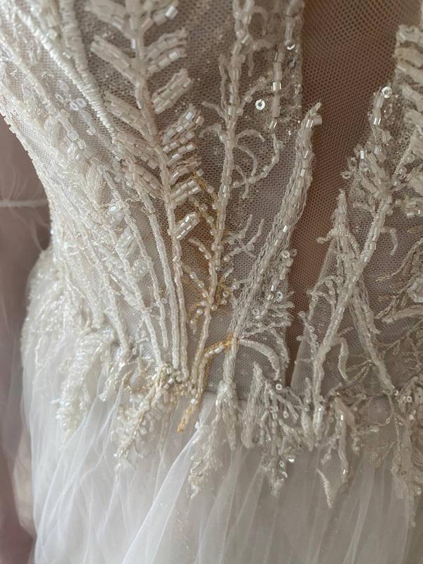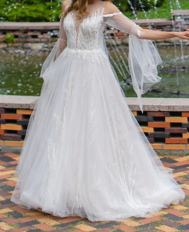 Платье размер s (на бирке 36 р.), одевала на рост 177 см., обхват груди 80 см, талия 64 см, с небольшим шлейфом. Нужна химчистка, фото пятен добавляй. Есть возможность примерки в м. Одесса