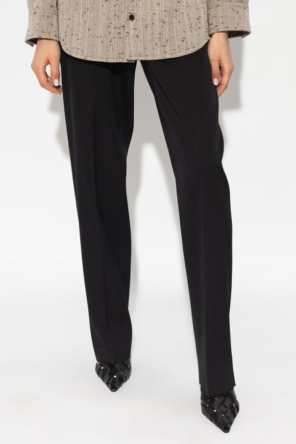 Black pleat-front trousers from Bottega Veneta. Made of wool, this design features a hook, button and concealed zip, four slip pockets and slightly tapered legs.