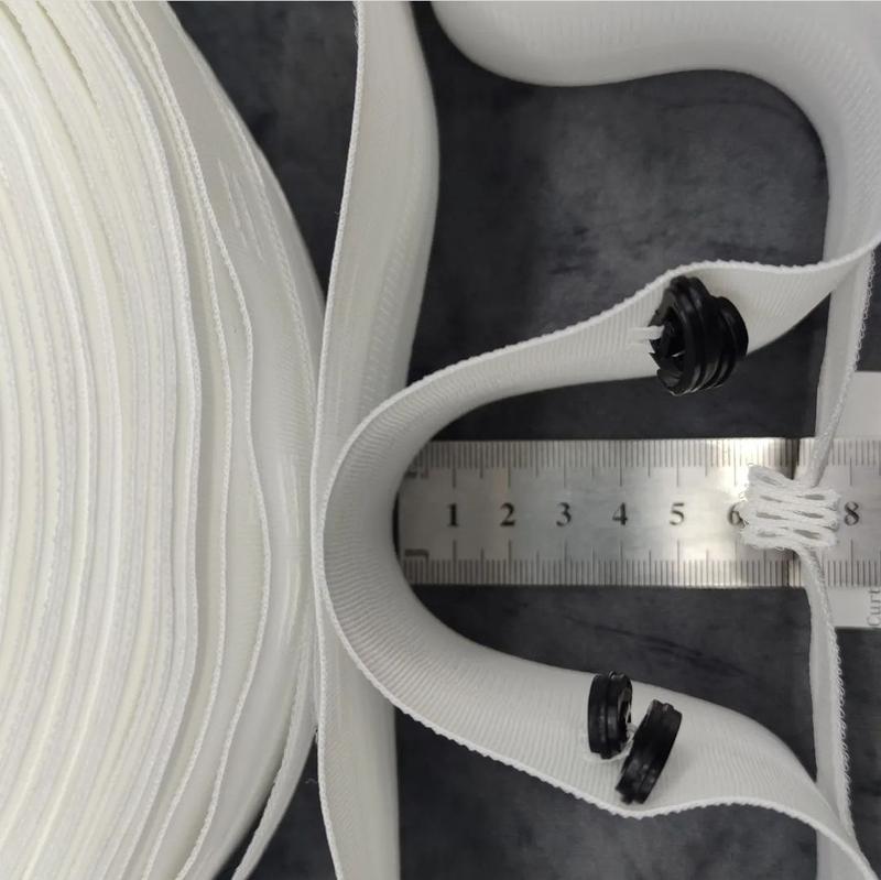 Данная тесьма, шириной 8 см, имеет две нити для стягивания, имея коэффициент