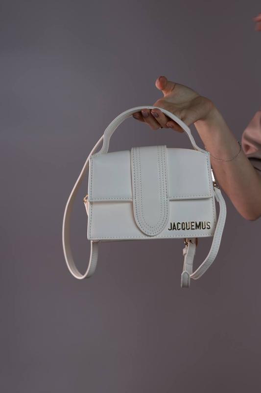 Цвет фурнитуры: золотоМини сумка Жакмюс выполнена из качественной, приятной на ощупь эко кожи. Прикрашена металевим, золотим логотипом Jacquemus. В сумке одно основное отделение, имеет боковую нашивку из эко кожи с надписью бренда. Закрывается на магнитный замок. Подкладка из эко кожи. На обратной стороне есть открытый карманчик. В комплекте сменный плечевой ремень из эко кожи, который регулируется.