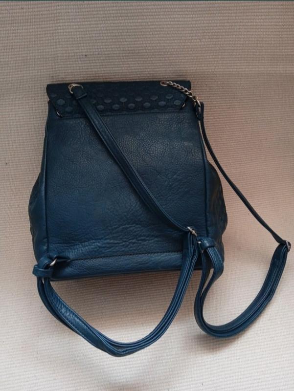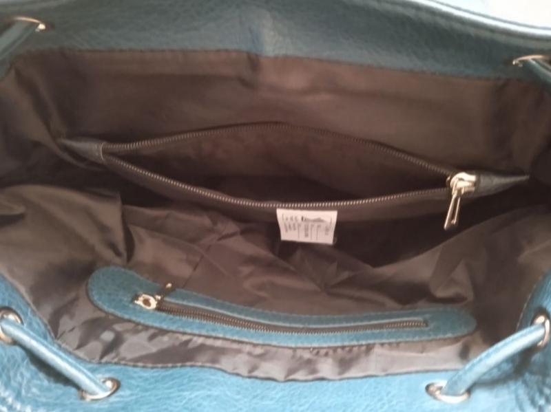 Классный рюкзак среднего размера, материал - кожаный заменитель (эко кожа) Стан идеален, без трещин и царапок. Цвет ближе к бирюзе. Ширина 27см, глубина 25см, внутри два карманчика.