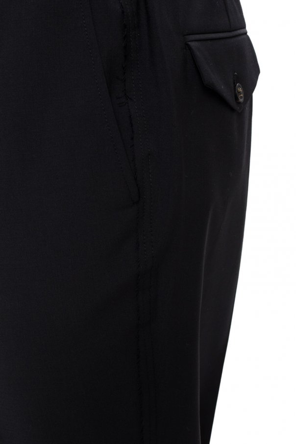 Black pleat-front trousers from Golden Goose featuring elastic waist accompanied by zip fly as well as three pockets on the front and two pockets (one with button-fastened flap) with logo on the back.