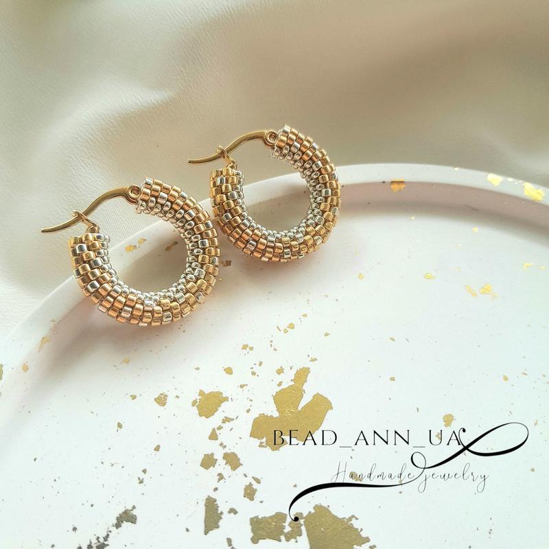 Сережки конго були створені під замовлення, з урахуванням побажань замовниці, а саме градієнт з переходом кольору від срібла до золота, тільки не вздовж сережки а вширину✨️