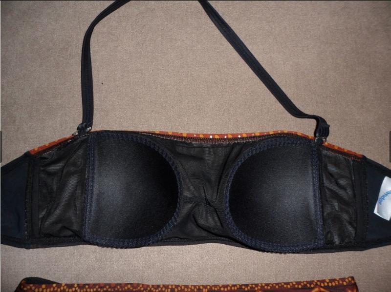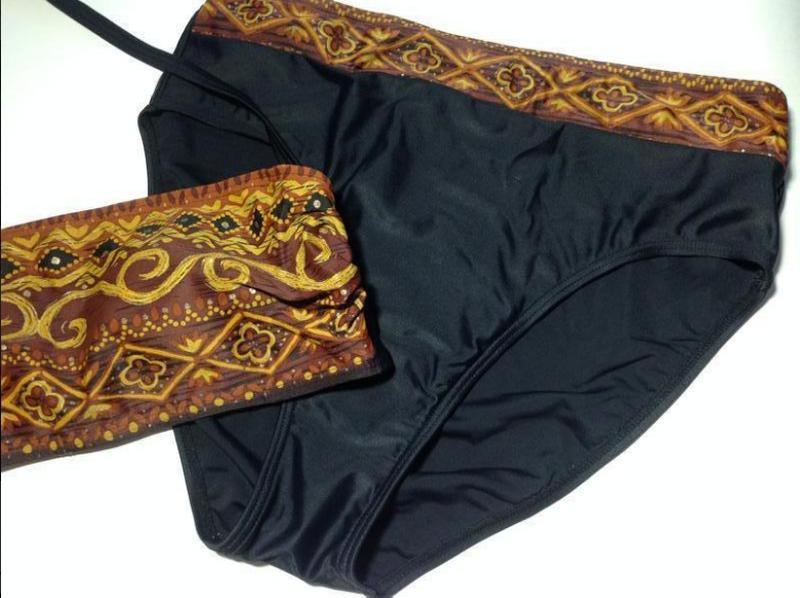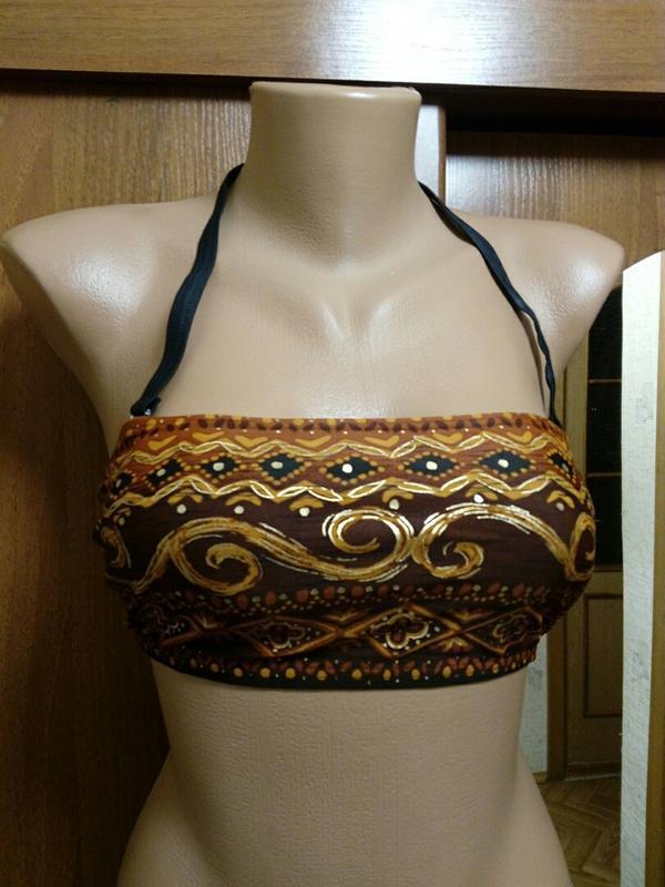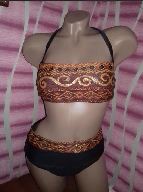 Купальник черный раздельный . С красивым золотистым орнаментом. Плавки высокие , на широкие бедра. Внутри лифа поролоновая прокладка с сеточкой. Высокое качество. Есть нюанс с плавками,не критический,но можно подобрать еще черные плавки.