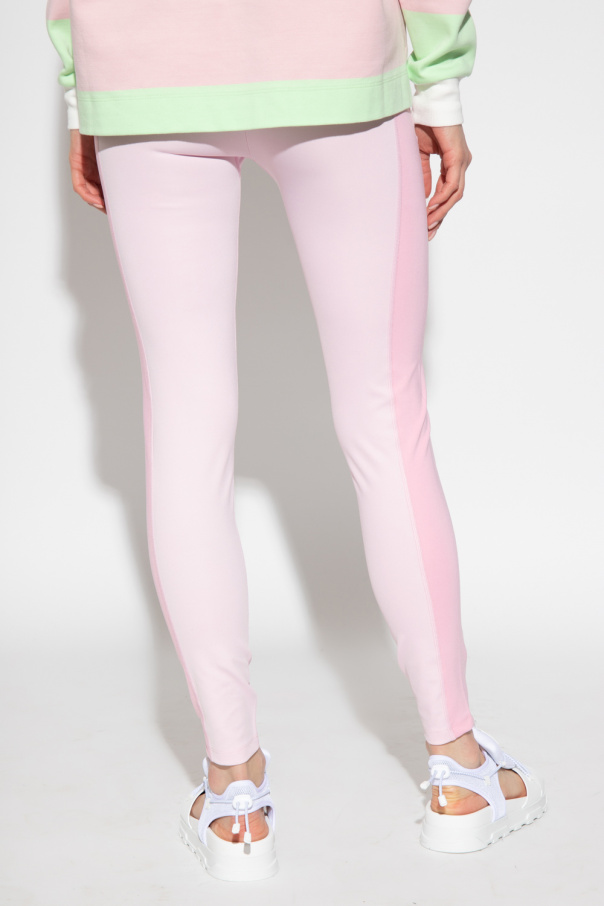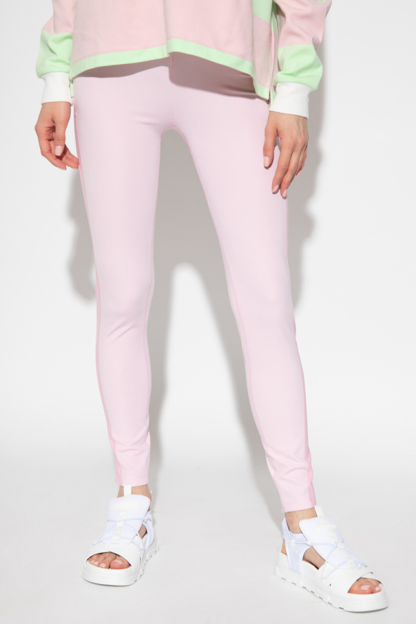 Light pink training leggings from Iceberg. Crafted from stretchy material, they feature an elasticated waistband with repeated logo embroidery, a back zip pocket, exposed stitching details and narrow legs.
