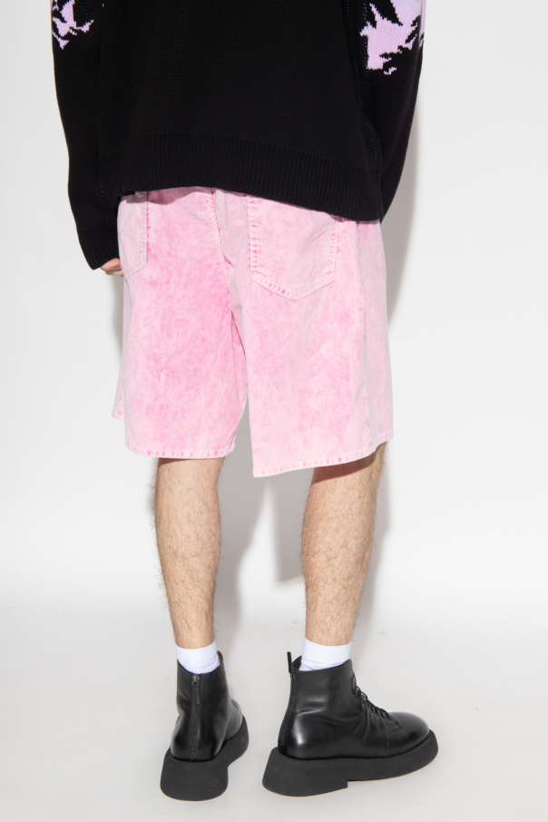 Pink ‘Surfer’ shorts from Dsquared2. Made of cotton with a ribbed texture, this pair features an elasticated waistband, button closures, five slip pockets and a black patch with an embossed logo at the back.