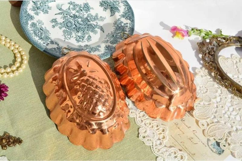 Медные формы для выпечки Винтажная пара форм для выпечки с рельефным