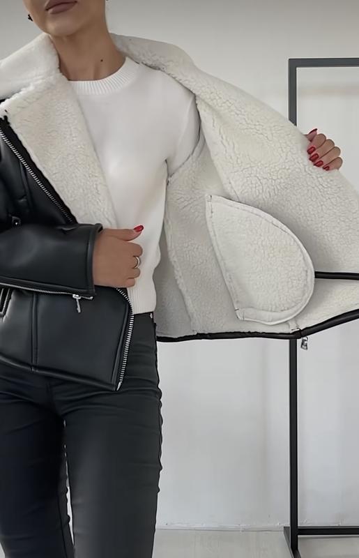 Дублянка з якісної екошкіри на хутрі стриженої вівці. Виглядає дуже стильно!