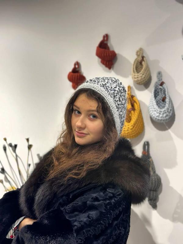 Шапка - тренд сезону чепчик. Пухнастий, з шикарним матовим блиском паєток, в'язаний аксесуар ручної роботи. Модель тільки набирає популярності.