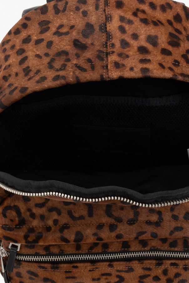 Brown and black backpack from Ami Alexandre Mattiussi. Crafted from leather and bristles, this design secures with a two-way zipper and showcases an animal motif, black-enamelled ‘Ami de Coeur’ hardware on the front, technical fabric details, two zip pockets on the front, one slip pocket at the back, a top handle, adjustable shoulder straps, silver-tone metal elements and one internal compartment with a slip pocket.