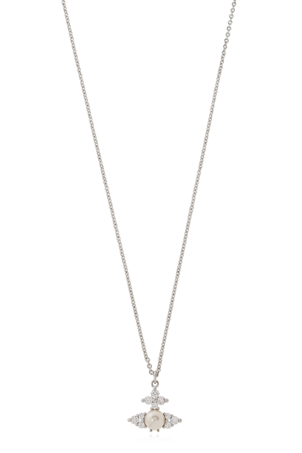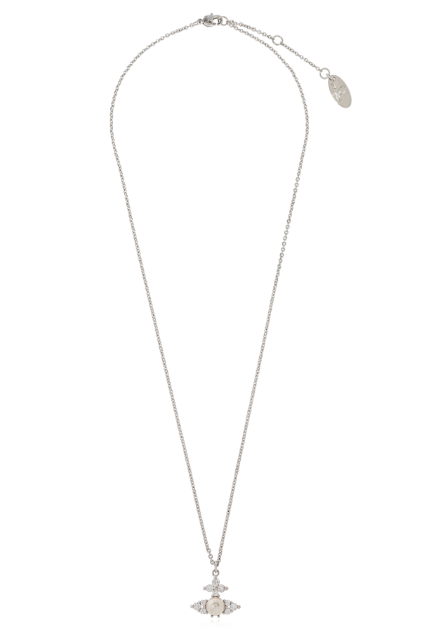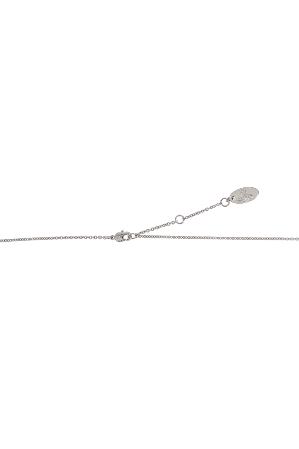 Introducing the quintessence of sophisticated adornment, the Vivienne Westwood Logo Pendant Necklace. This exquisitely crafted piece is a testament to minimalist elegance, featuring a delicate silver-toned chain that gracefully holds a symmetrical pendant. The pendant, possibly a pearl or similarly shaped gemstone, sits at the core, encircled by radiant elements reminiscent of flower petals or stars, creating a mesmerizing effect. Crafted from high-quality brass with a silver finish, this necklace exudes luxury. The central charm, potentially bearing the iconic Vivienne Westwood logo, is the focal point of this necklace, adding a touch of branded sophistication. The adjustable clasp ensures a perfect fit, making it a versatile addition to any ensemble. Whether showcased on the neckline for an elegant soirée or paired with daily attire for a hint of refinement, this necklace is designed to captivate and charm. Why Purchase This Necklace? Exemplary craftsmanship and high-quality materials typical of renowned designers Elegant and subtle design with a distinctive pendant that adds a refined touch Adjustable closure for a customizable fit Silver-toned color that complements a wide range of outfits A minimalist design enriched with sophisticated detail, embodying Vivienne Westwood\'s iconic style