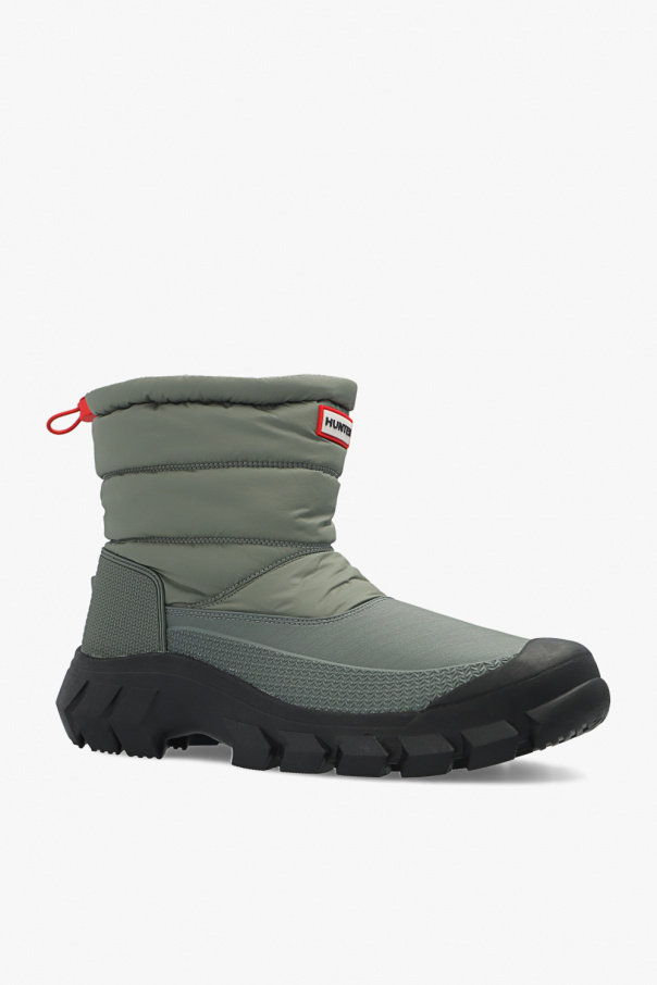 Grey ‘Intrepid’ waterproof snow boots with a white, red and black logo patch from Hunter. Handcrafted with a recycled nylon upper, recycled fleece lining and an innovative Ortholite® footbed. The topline retains warmth. Can be worn in temperatures as low as -20°C (-4°F).