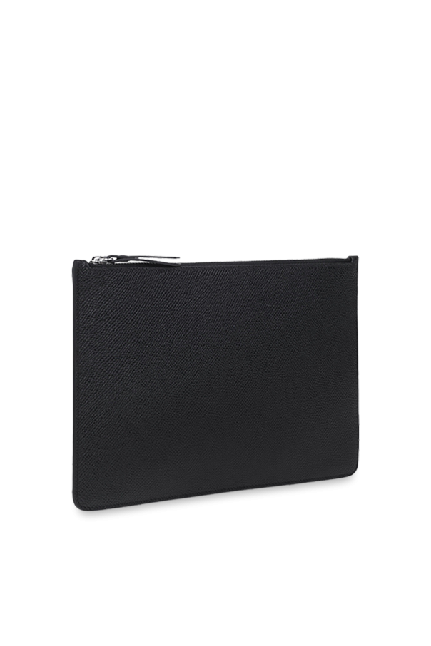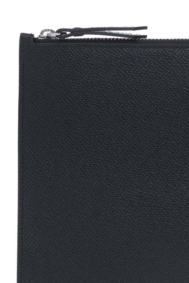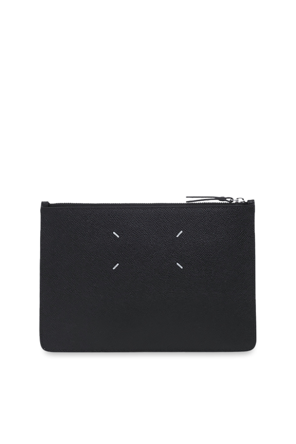 Black pouch from Maison Margiela. Made of calf leather, this model features a zip fastening, white logo embroidery, one internal compartment and silver-tone metal hardware.