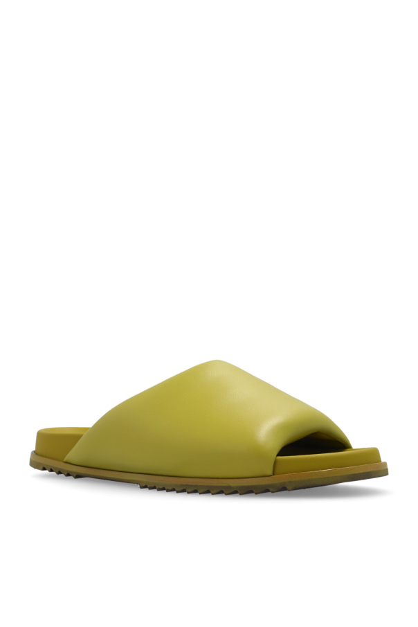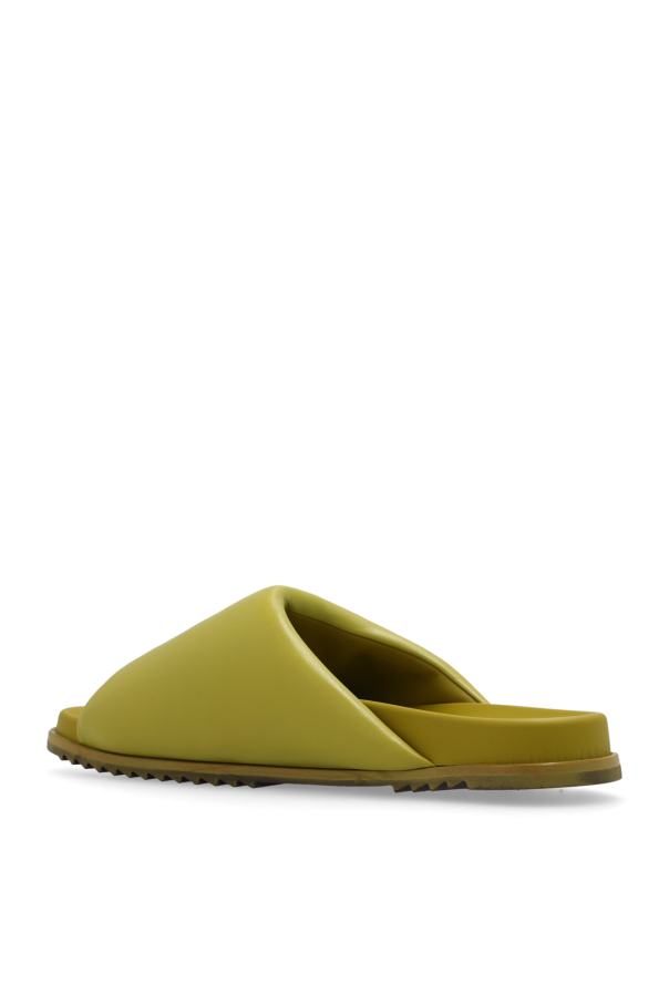 Green ‘Granolas’ slides from Rick Owens. Made from lamb leather, this model sits on a brown rubber sole.