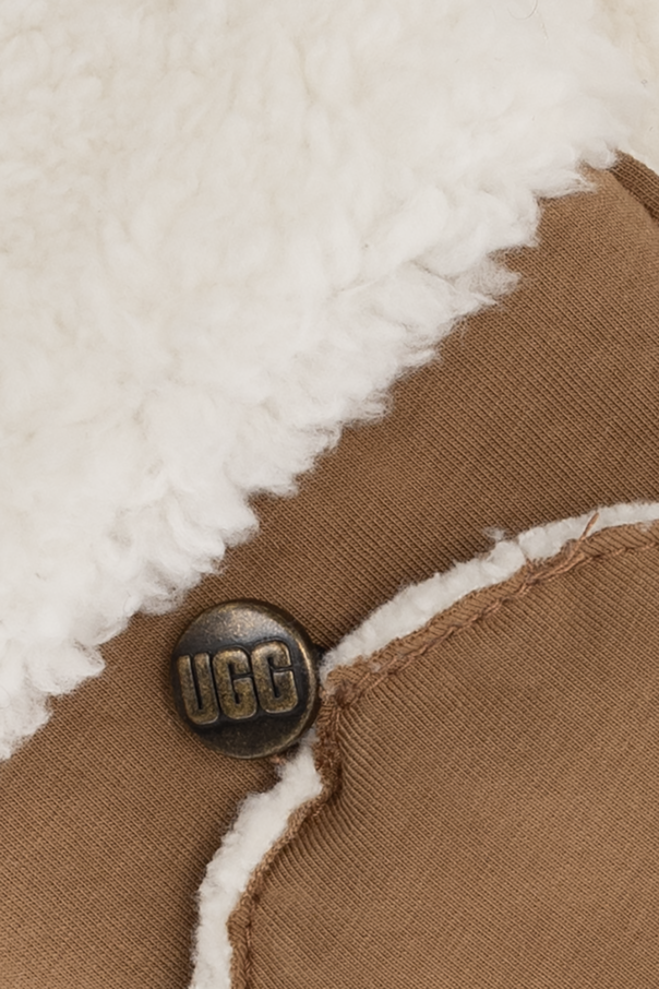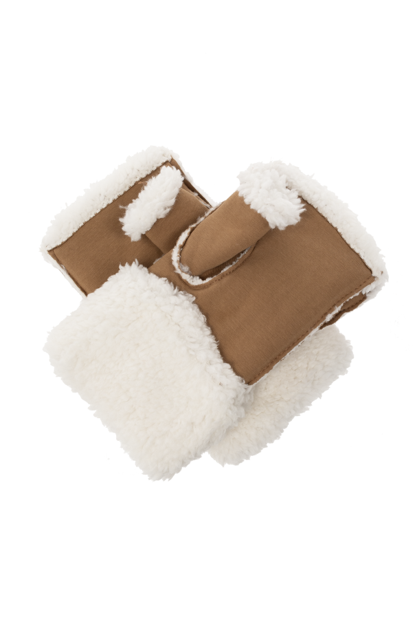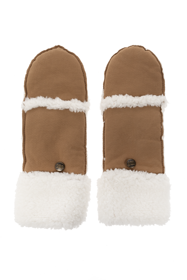 Brown and cream gloves from UGG. Trimmed with soft and cosy fleece, this pair transforms from mittens to fingerless gloves in seconds and features button fastenings.