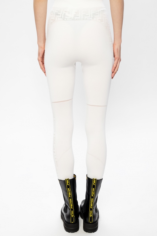 White leggings from Fendi. This design features an elastic waistband and an embroidered logo pattern.